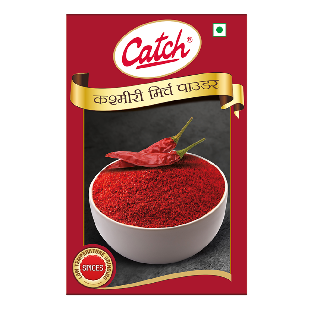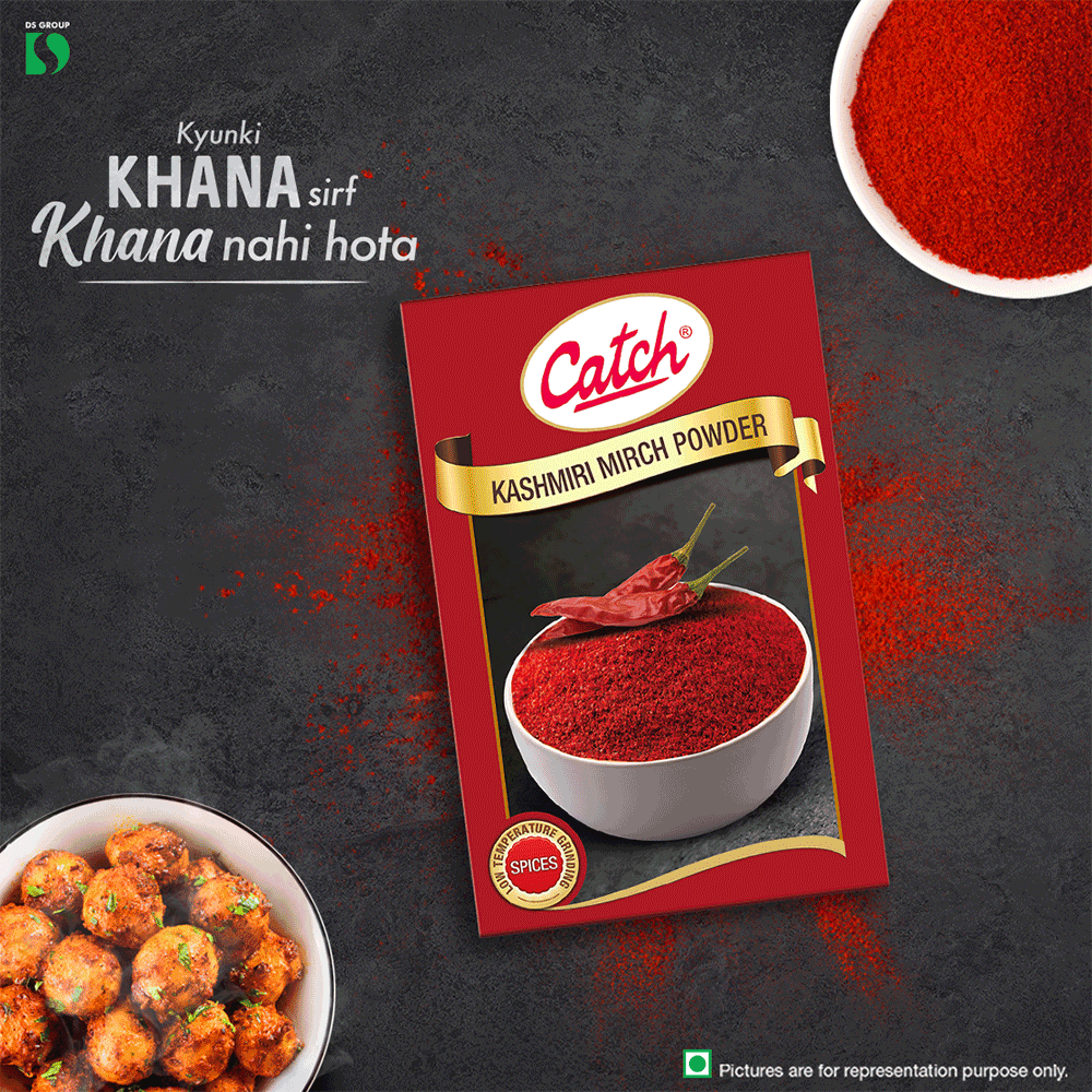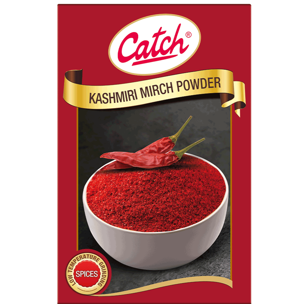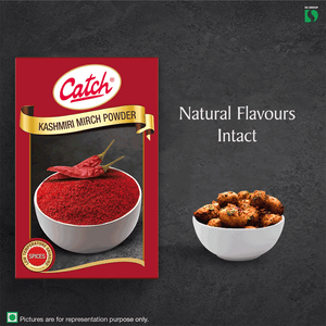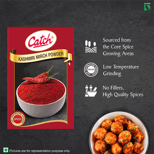 Catch Kashmiri Mirch Powder is a garnishing Indian masala used widely for it's attribute to give red hot colour to your dishes, but, at the same time, not to make it too spicy. Catch Kashmiri Mirch (Red Chilli) Powder is a Indian spice which contains the best stem-less quality red chill with higher colour value, hand picked from Baydgi, Karnataka.