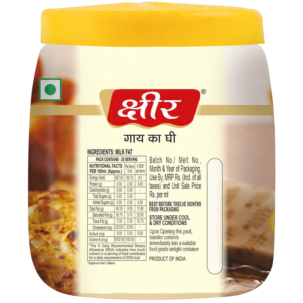 Ksheer Pure Cow Ghee: Crafted with the Special Slow Cooling Process for Premium Quality.
