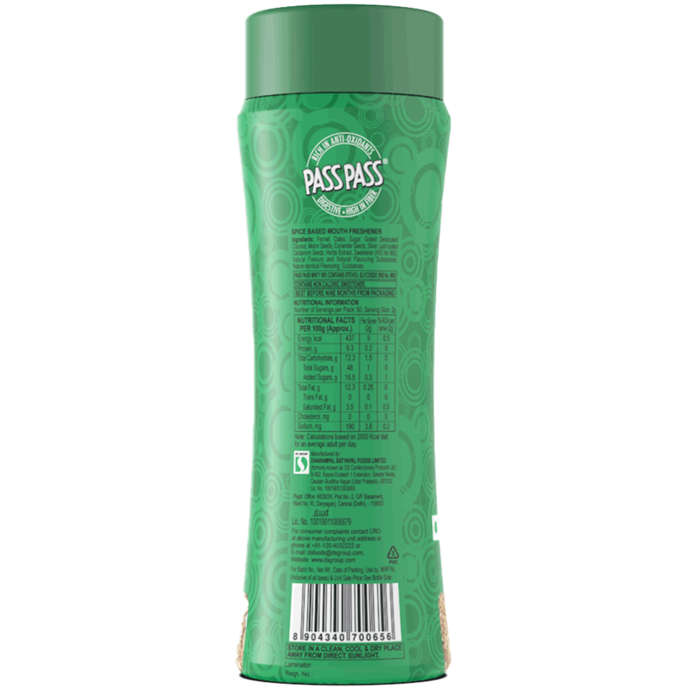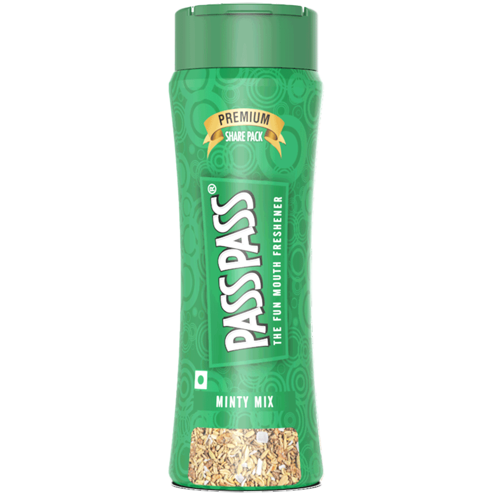 Pass Pass Minty mix is a perfect balance of ingredients like fennel, dates, desiccated coconut, melon, coriander, cardamom, and herb extracts. Each of these ingredients comes with many nutrients that boost the body’s digestive metabolism, making it the go-to choice for an after meal mouth freshener. It is like a family or group of friends coming together to celebrate their togetherness every day. Just as our near ones fill our lives with happiness, the burst of sweet, aromatic flavours adds delight to the whole experience. Whether it is a festival or a casual gathering of friends and family, a scrumptious meal with family or quick snacks with friends, or just to take a break from work - Pass Pass fits right in on every occasion. And there’s variety as well - you can either pick Minty Mix or opt for Sweet Magic, Frutti Mix and Saunf Delight Mix to add to your happiness.